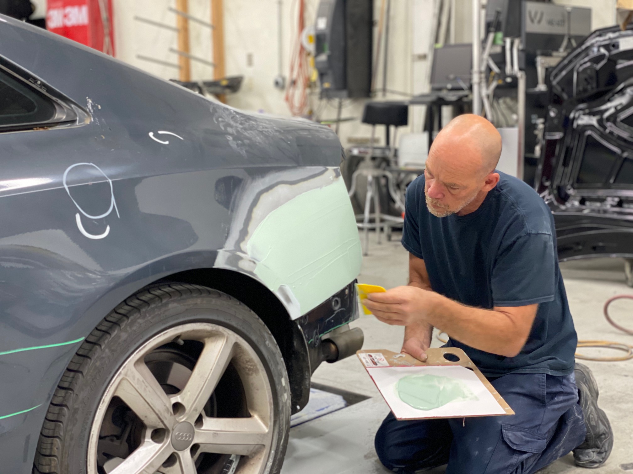 So when is traditional dent repair is required? Typically, traditional dent repair techniques will be used when there is a puncture to the body or the metal of your vehicle is stretched upon impact. It will also be needed if the dent is too deep to extract. This type of repair is also appropriate when extensive paint damage from the impact exists, which includes chips or deep scratches. To repair a severely scraped dent, our technicians pull out the crushed area until it is level with the original surface. In some cases, this may even require replacing the damaged areas. Once our technicians achieve an ideal surface and smooth out the affected area, a computerized paint-matching system matches your new paint to the vehicle’s original color.